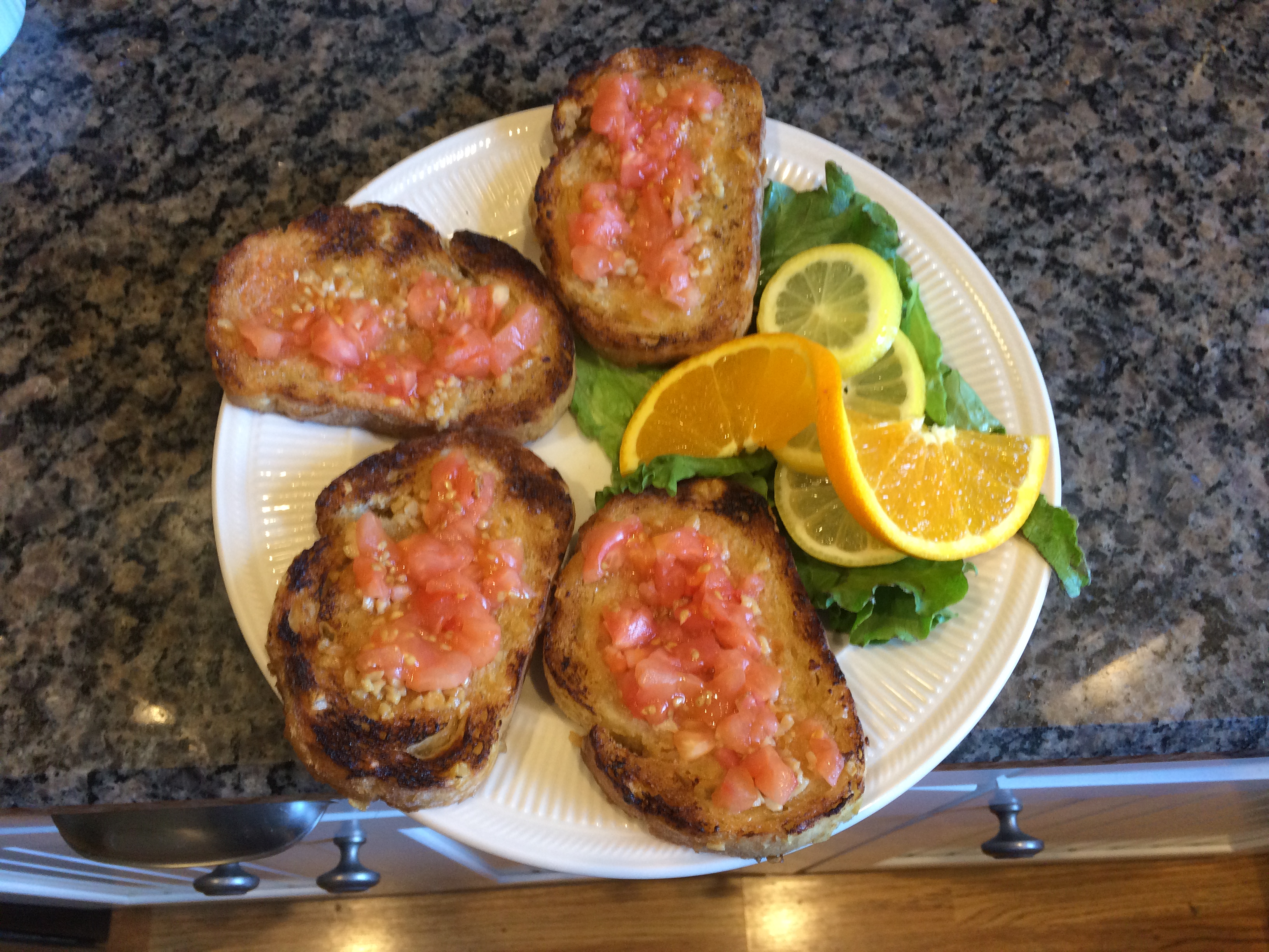 A sample breakfast derived from the Northern regions of Spain, Pan Tomate ala 2 W Lake.
