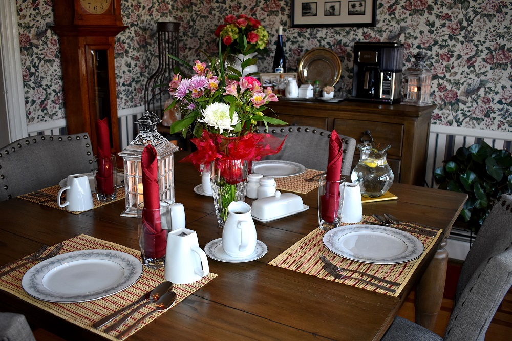 At Breakfast - We cater to the comfort, privacy and security of our registered guests. Guest visitors are only permitted on the property with prior Inn Keeper approval. If you would like to have any non-registered guests join you for breakfast there is an additional charge of $25 per person, and advance notice to the innkeeper is required. If non-registered guests join you at breakfast for coffee or tea only, a $5.00 Service Fee per visitor applies. All individual beverage and breakfast items are charged seperately on top of the service fee for non-registered guests.